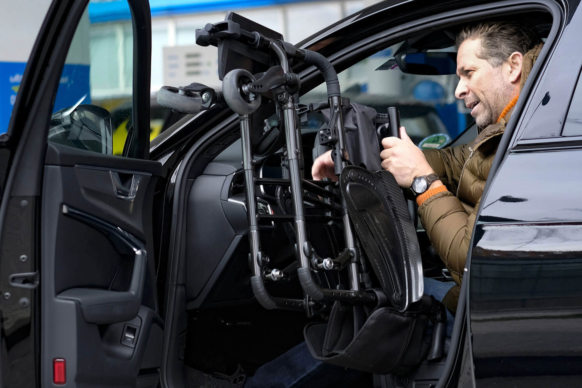 Waga po demontazu:Z odchylanymi podnóżkami: od 7.5 kg (bez kół tylnych), Z zamkniętym przodem: od 7.3 kg (bez kół tylnych)