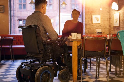 Wyjątkowo wąska podstawa wózka Q200 R umożliwi Ci wjazd tam, gdzie inne wózki się nie zmieszczą, nawet w wąskie ścieżki czy między stoliki zatłoczonej kawiarni (szerokość podstawy to zaledwie 58 cm).